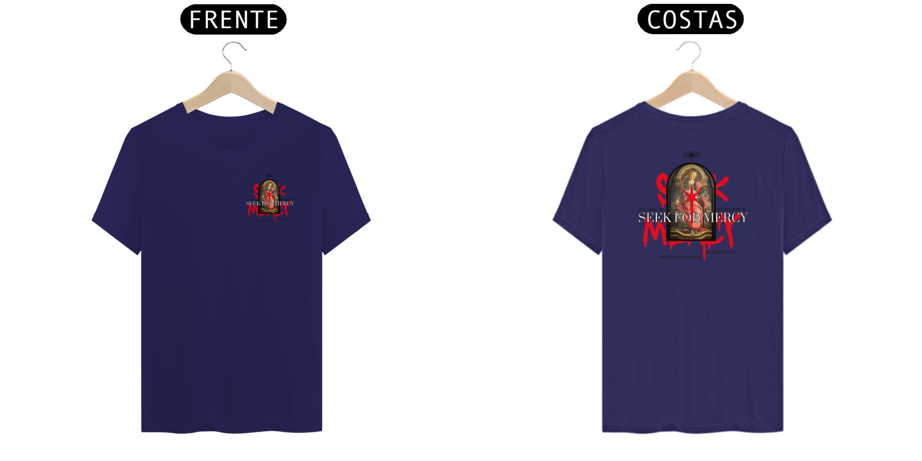 A Camiseta "Seek For Mercy" da marca Neanderthal®, disponível na Fábrica Indie, apresenta uma estampa frontal e traseira que explora temas de introspecção e busca por redenção, características marcantes nas coleções da Neanderthal®.
